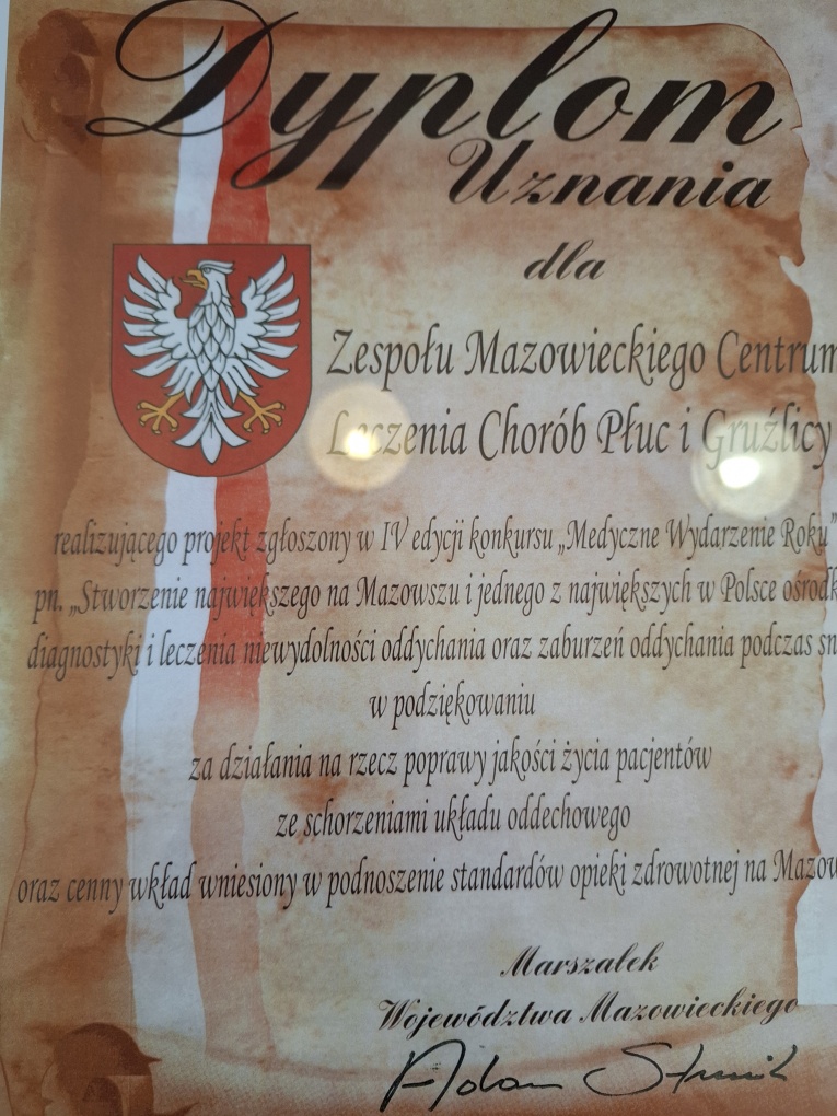 „Stworzenie największego na Mazowszu i jednego z największych w Polsce ośrodka diagnostyki i leczenia niewydolności oddychania oraz zaburzeń oddychania podczas snu”.